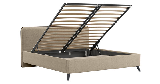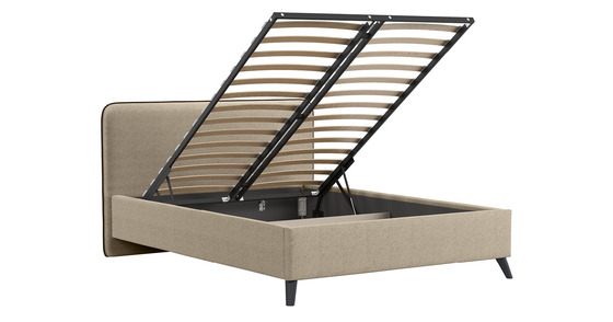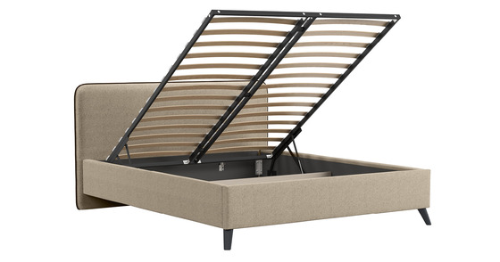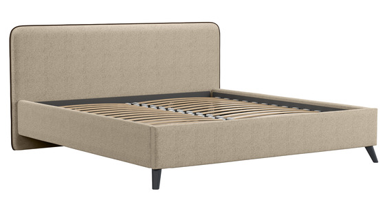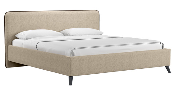 Кровать Миа 180 рогожка бежево-коричневый, кант желтовато-коричневый с ортопедическим основанием и подъемным механизмом