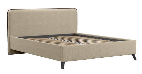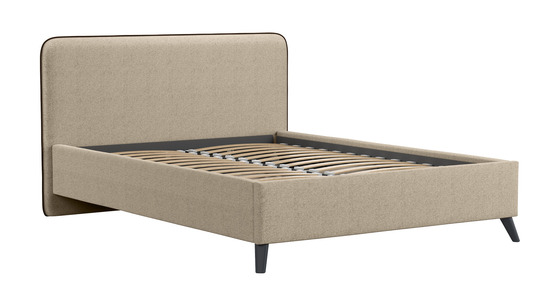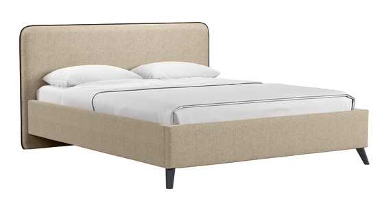 Кровать Миа 160 рогожка бежево-коричневый, кант желтовато-коричневый с ортопедическим основанием и подъемным механизмом
