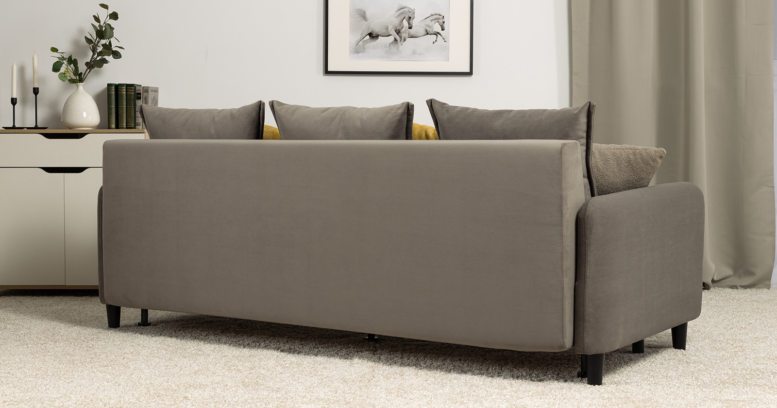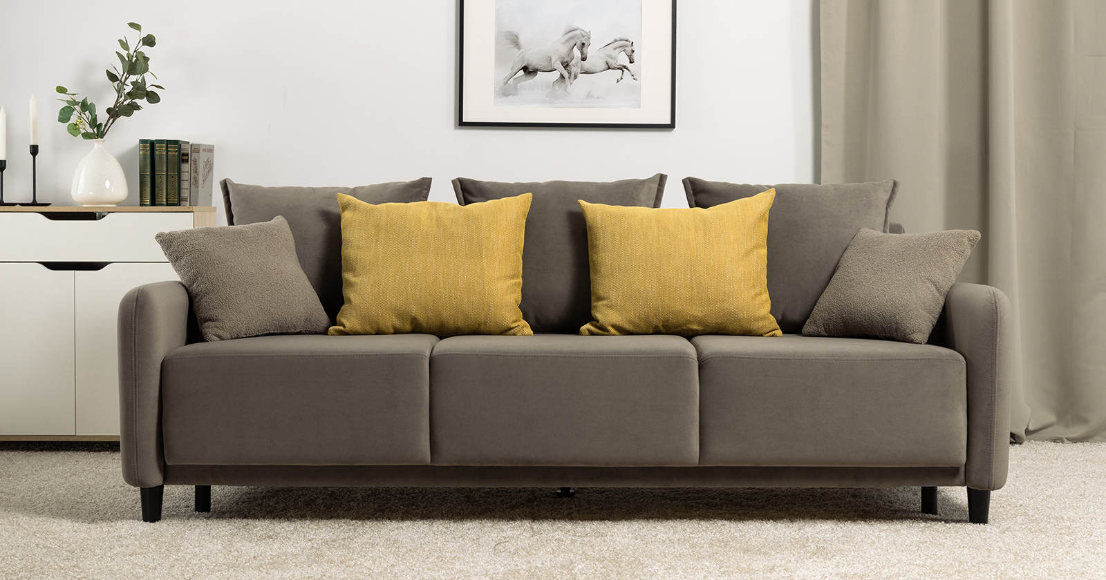 Диван-кровать прямой Дакота ТД 583 велюр Vendetta 10 серо-коричневый, Riga 1598 z1 col 34 горчичный, Romeo 03