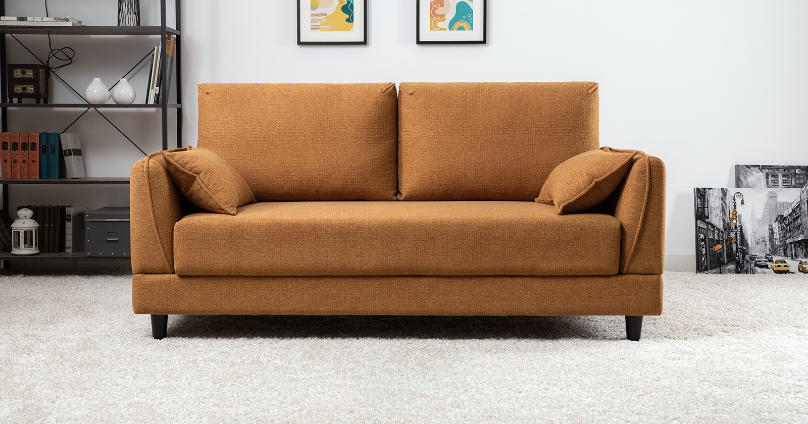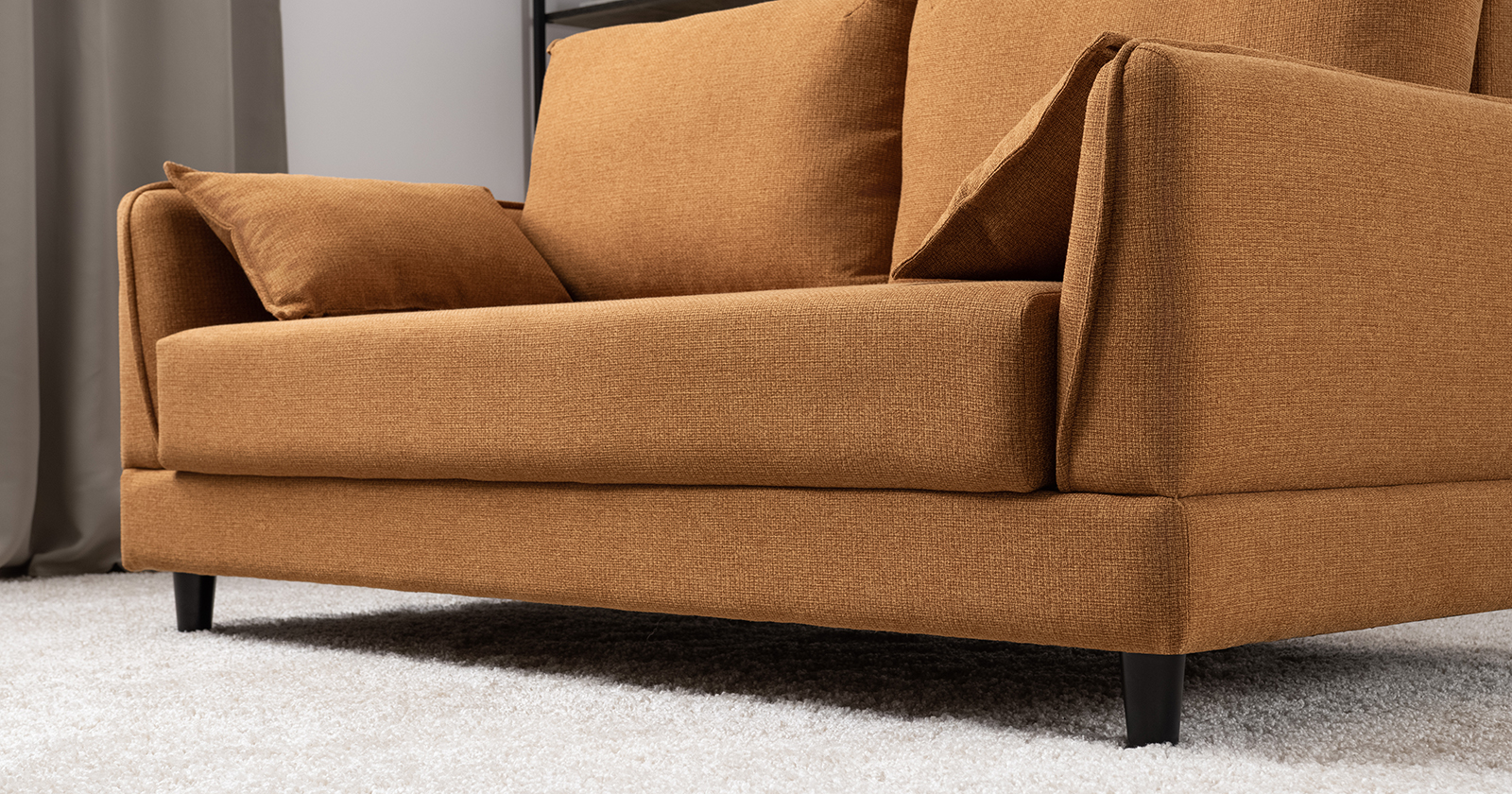 Лаконичный дизайн с деревянными ножками и узкими подлокотниками удачно дополнит не только интерьер гостиной, но и кабинета, и кухни. Кроме того, диван Макс позволяет организовать спальное место в ограниченном пространстве.