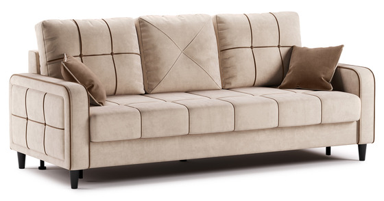 Посадочная и спальная зоны при раскладывании равны, что обеспечивает хороший сон. Механизм трансформации - книжка. Раскладной диван представляет больше возможностей для обустройства интерьера. Черные металлические ножки дивана высотой 160 мм позволят использовать его в интерьере лофт.