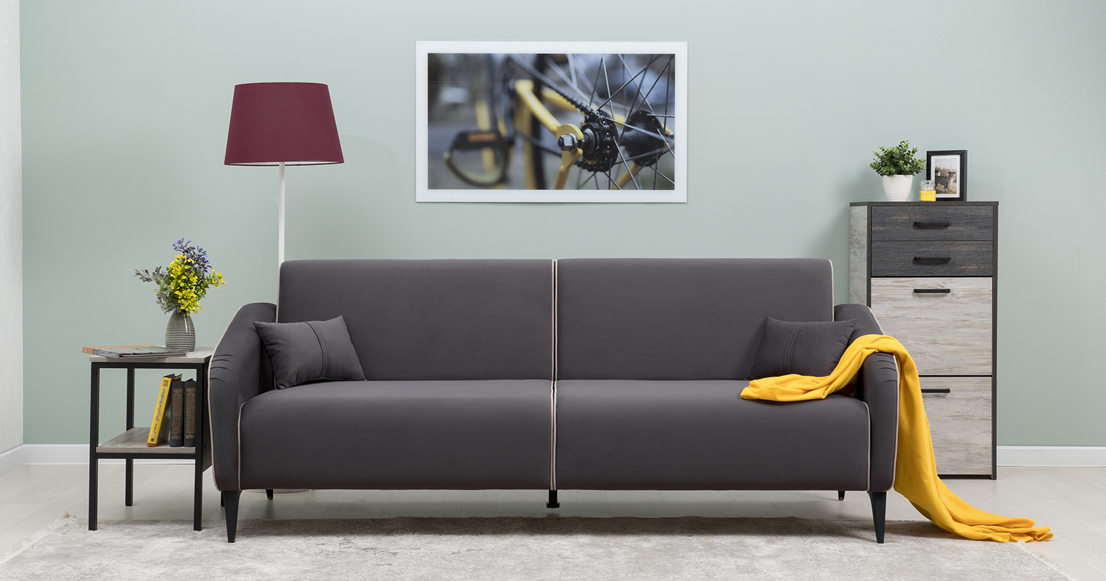 Диван-кровать прямой Ноэль ТД 447 велюр темно-серый, светлый кварцевый серый