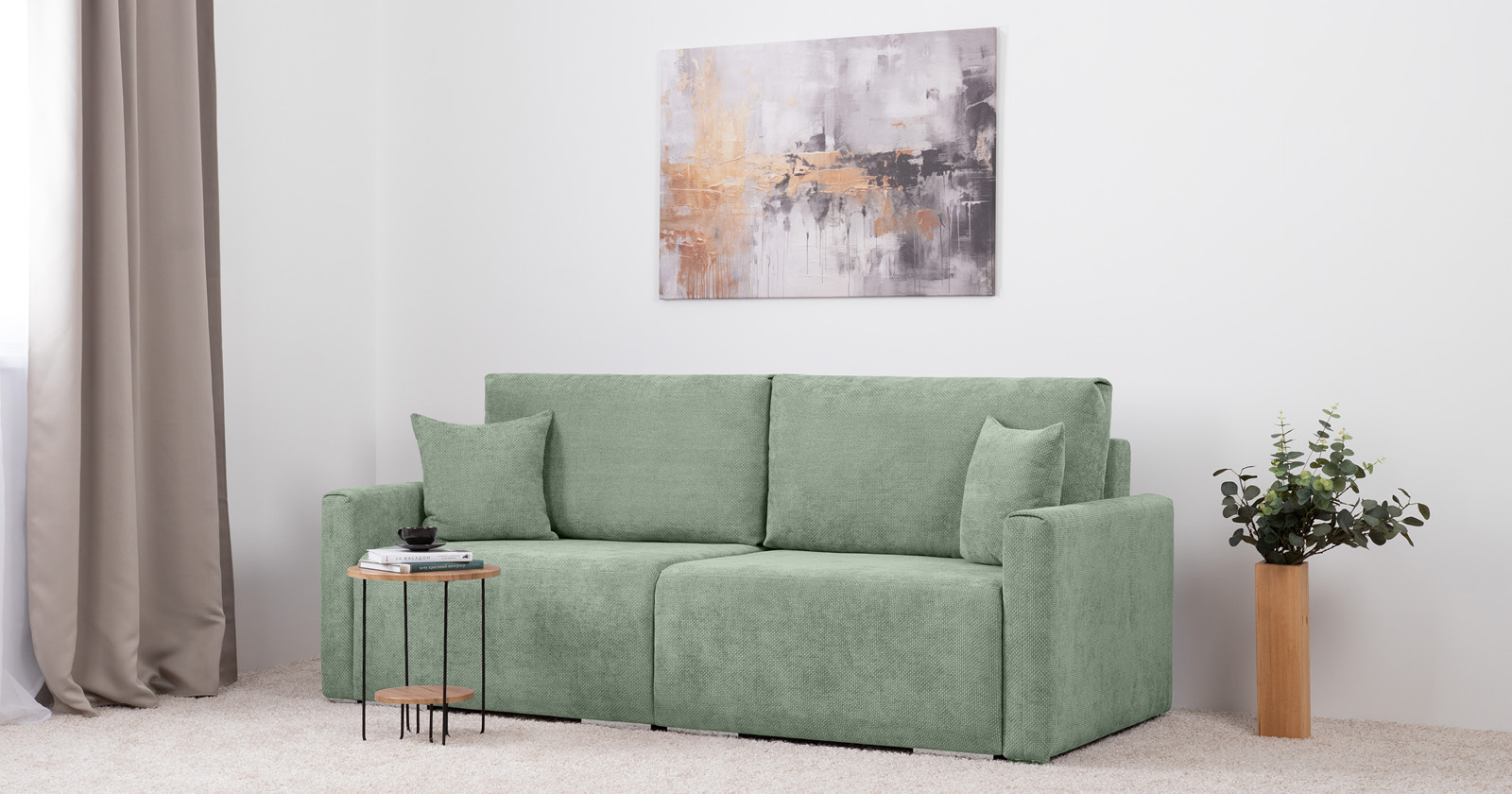 Диван-кровать прямой Оксфорд 715 композиция 3, STORM 9 мятный, модульная система