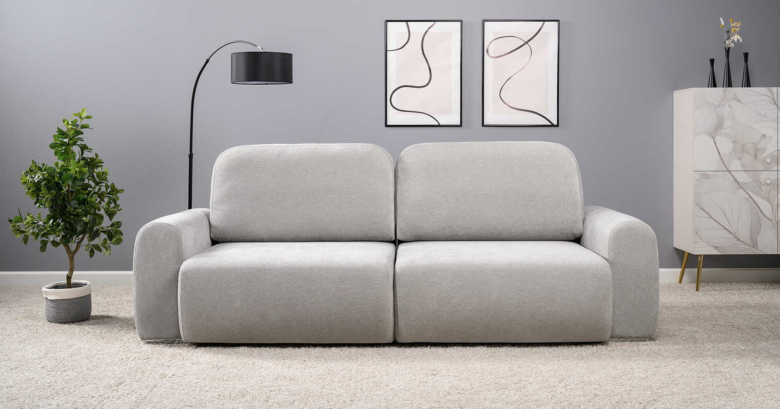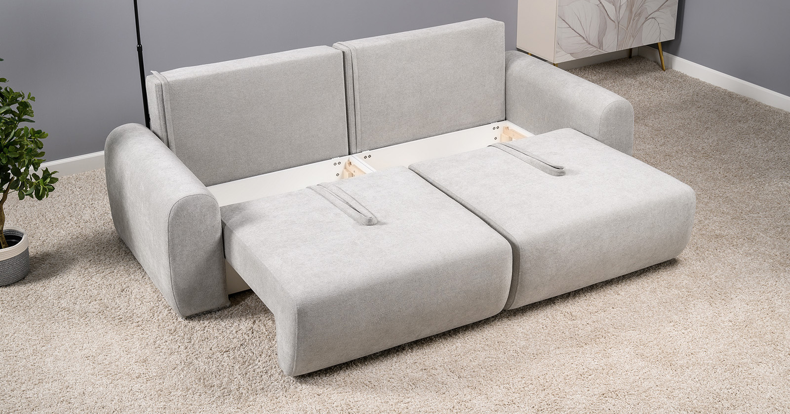 Диван-кровать прямой Тэдди 1505 композиция 1, букле Pique 010 светло-серый, модульная система
