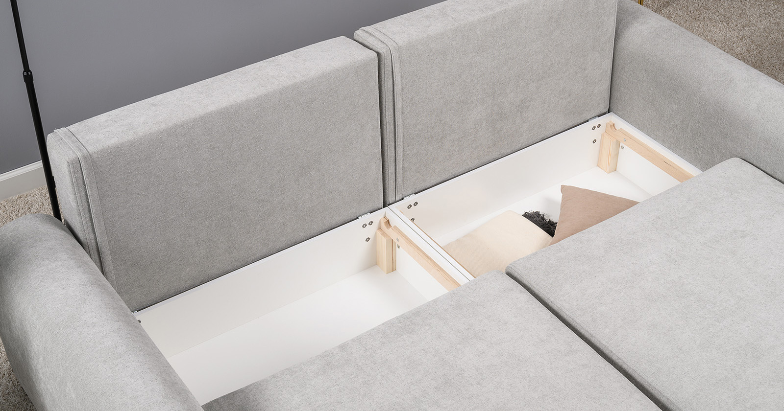 Диван-кровать угловой Тэдди 1506 композиция 2, букле Pique 011 серый, модульная система, сборка на любую сторону