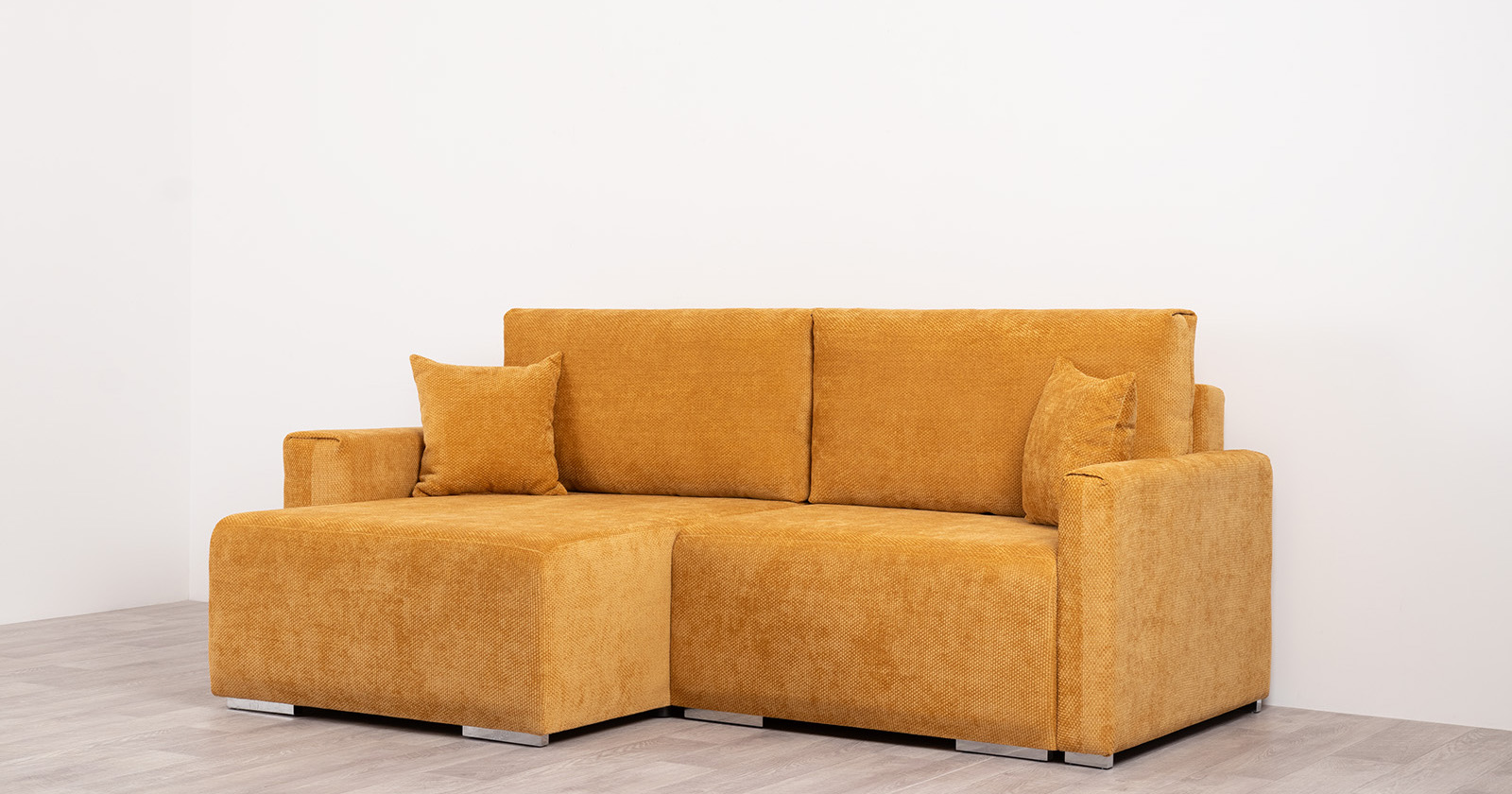 Диван-кровать угловой Оксфорд 714 композиция 1, шенилл STORM 8 горчичный, модульная система, сборка на любую сторону