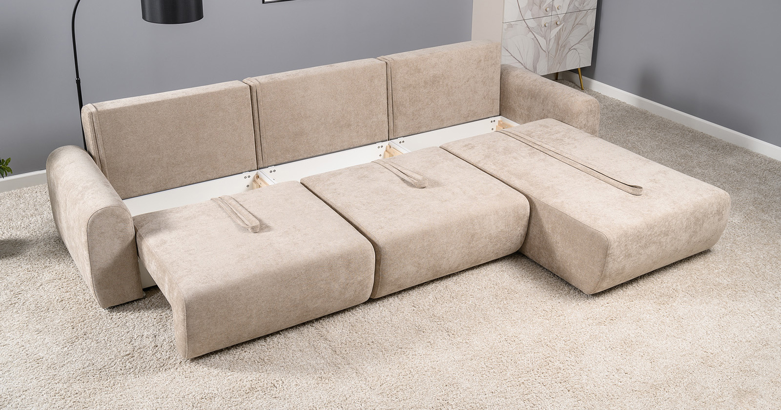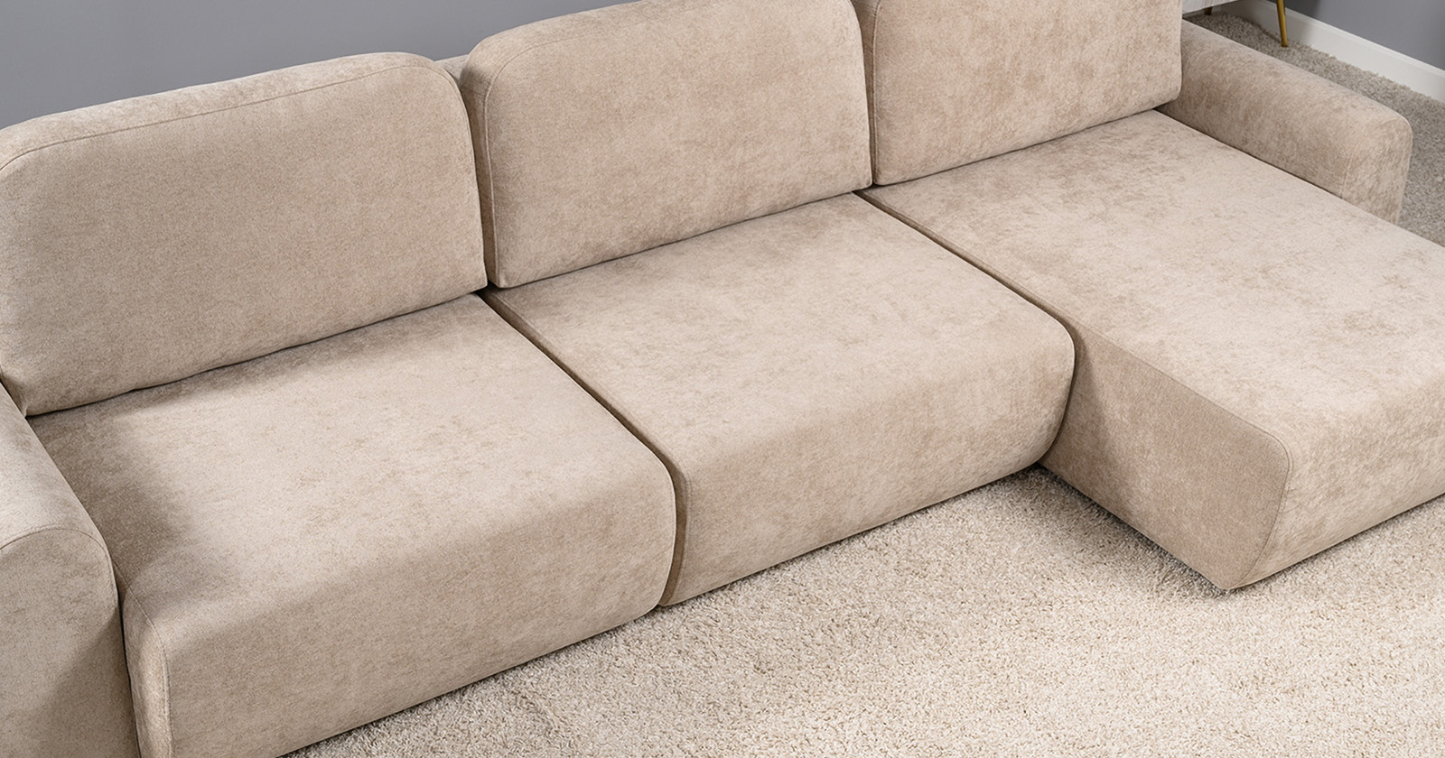 Диван-кровать угловой Тэдди 1502 композиция 2, букле Pique 006 бежевый, модульная система, сборка на любую сторону