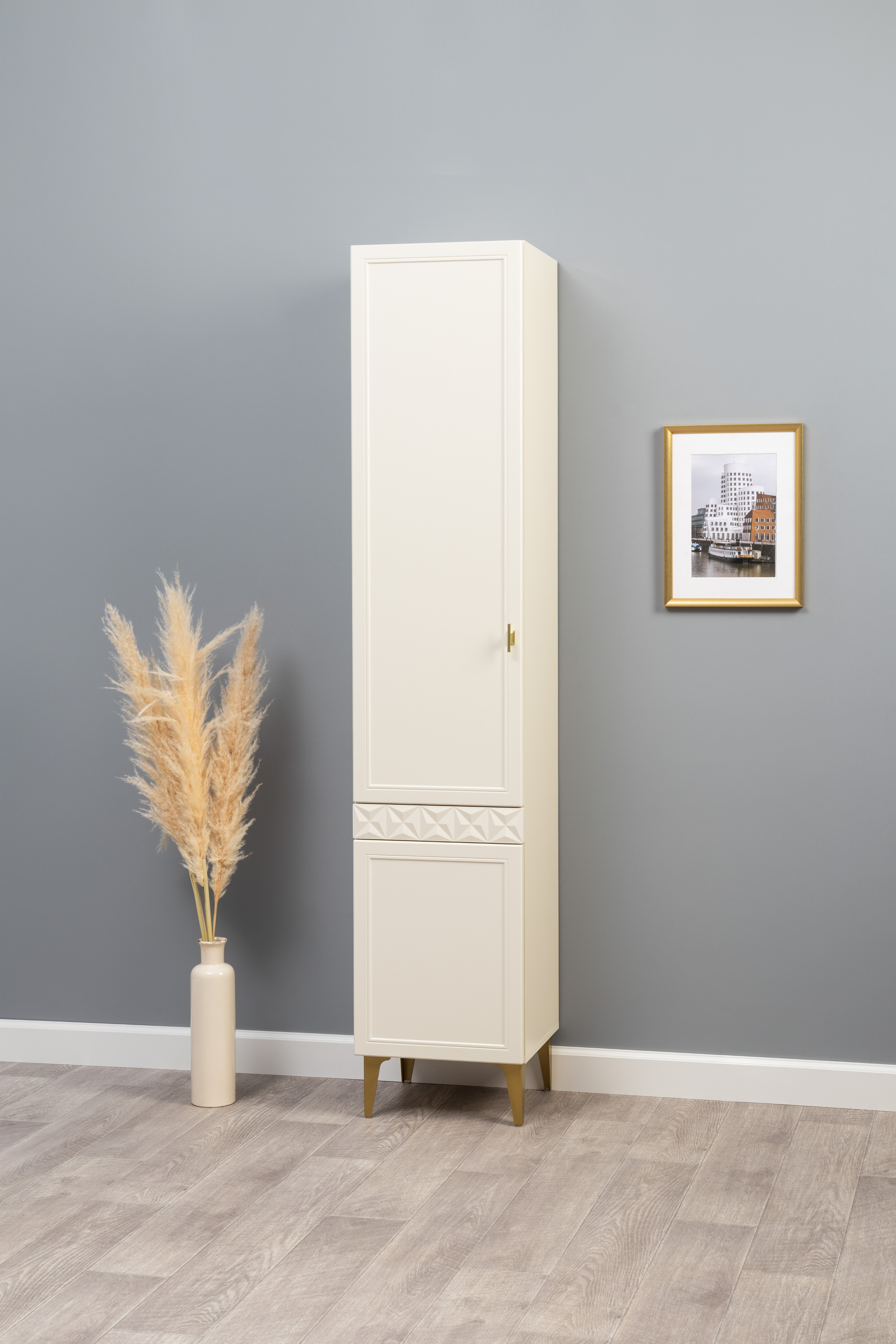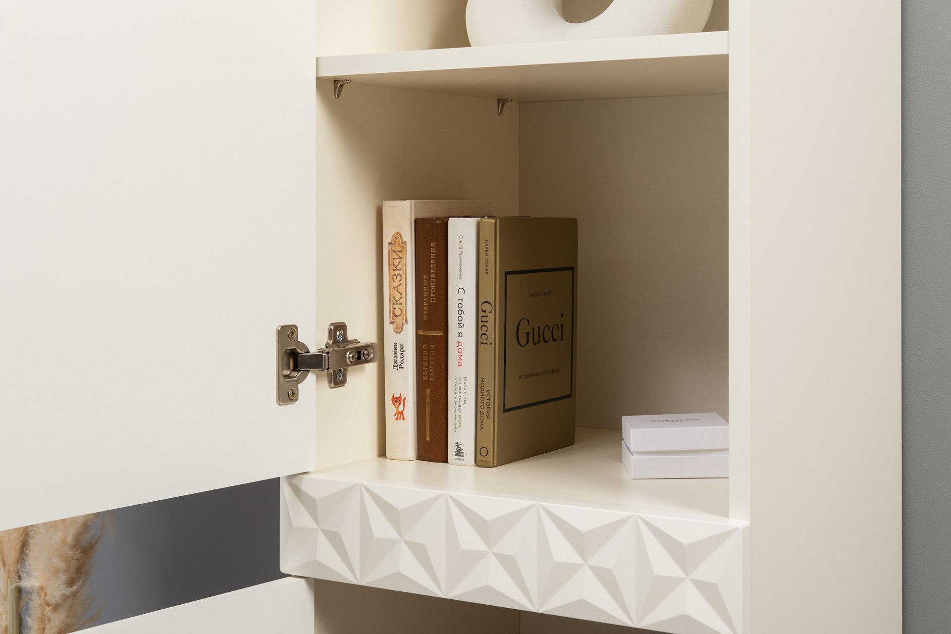Шкаф навесной Марион 16.334 слоновая кость С341 PE, слоновая кость 6898 ПВХ (собирается на любую сторону)