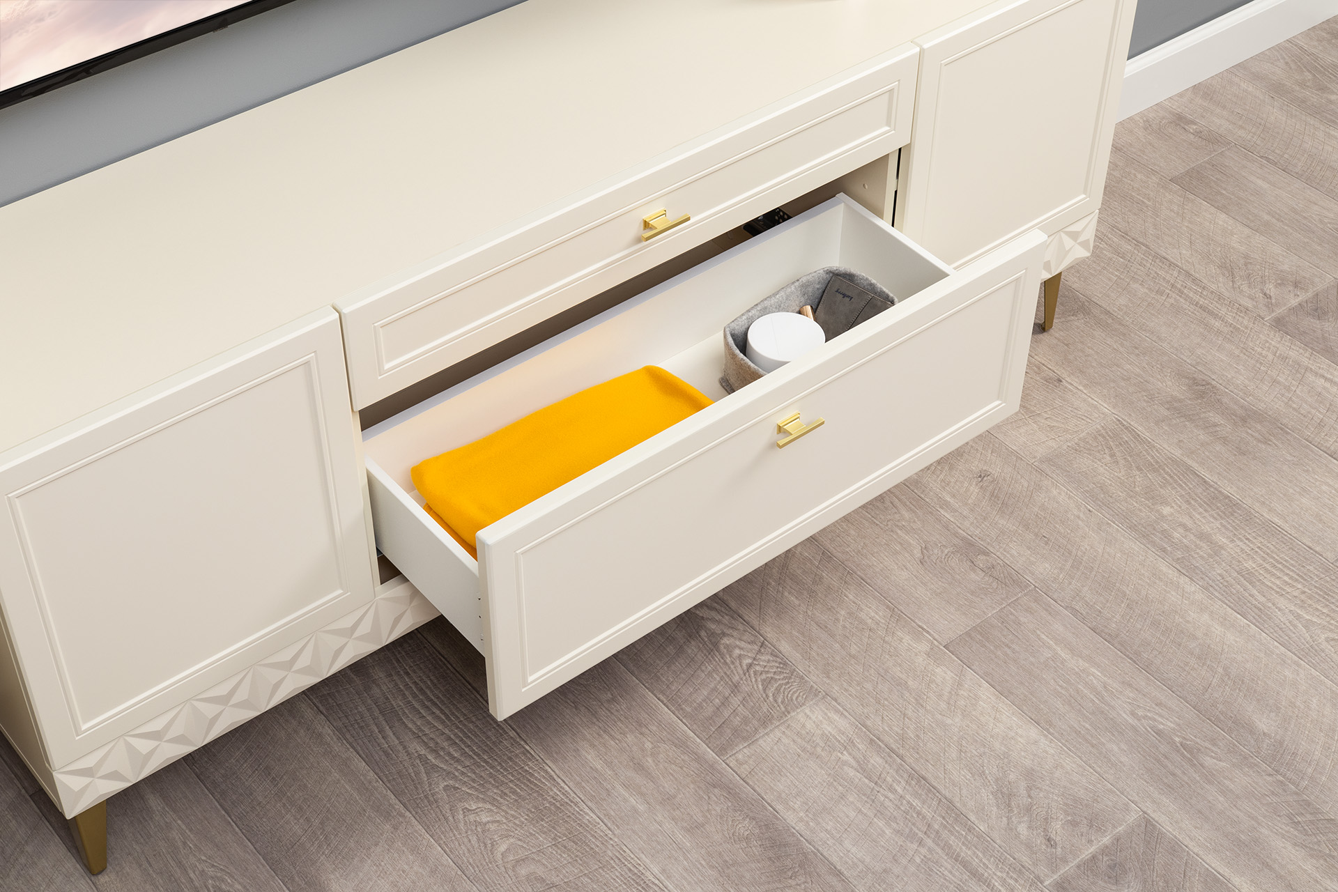 Комод Марион 16.249 слоновая кость С341 PE, слоновая кость 6898 ПВХ, белый PE шагрень