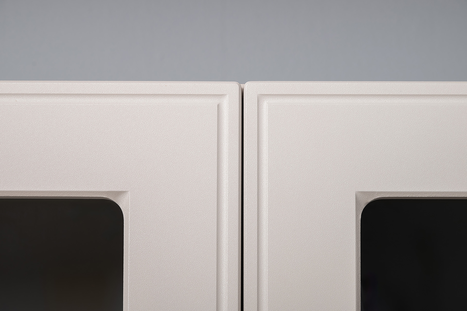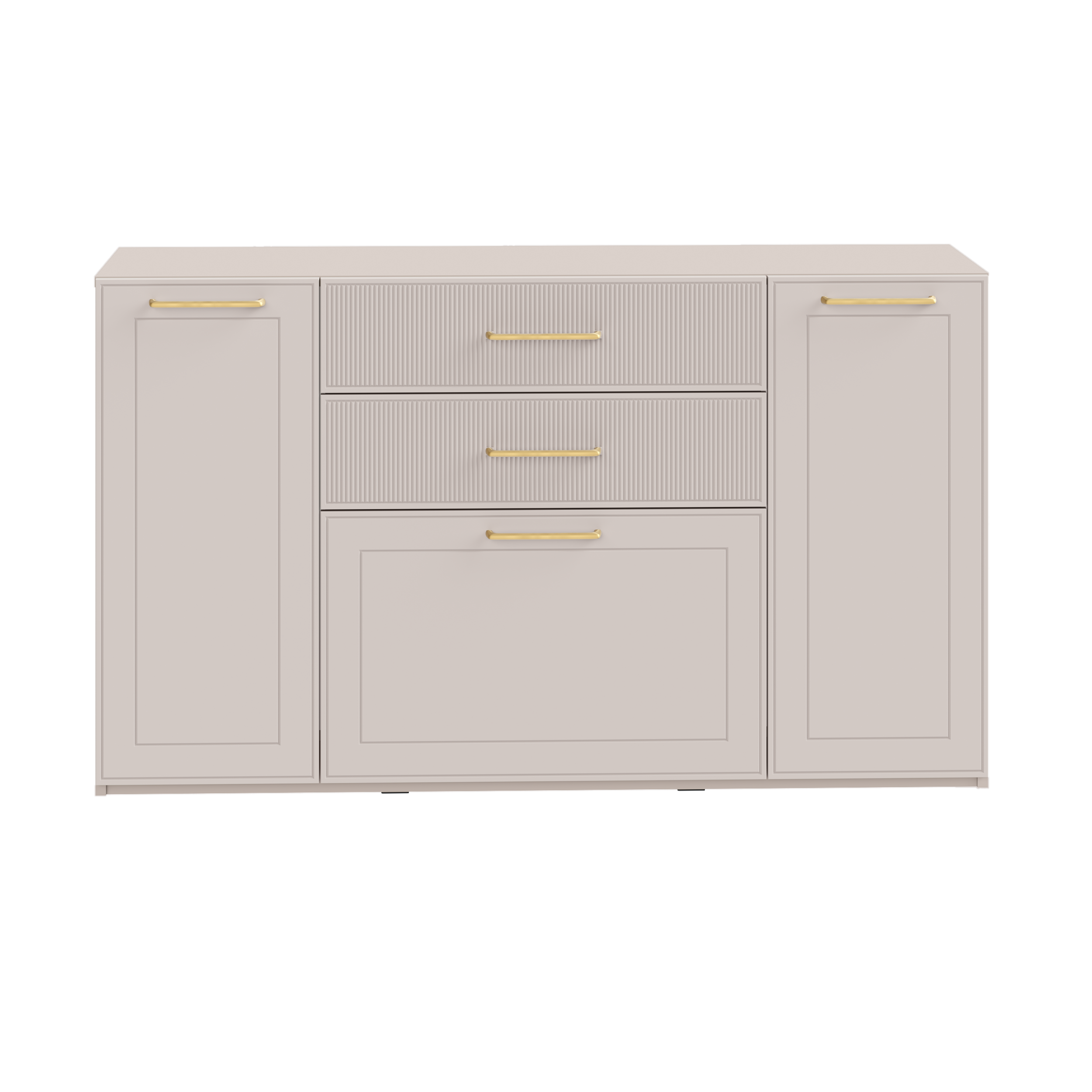 Гостиная Ричфорд композиция 2 без карнизов, кашемир 5981 BS, моно керамика D166-2 ПВХ, белый PE шагрень (собирается на любую сторону)