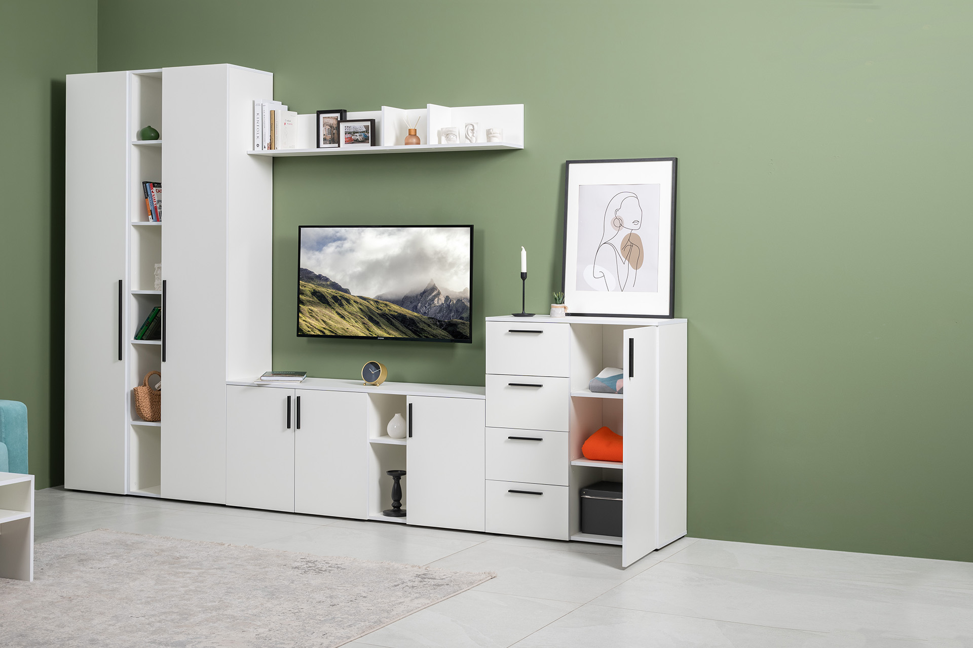 Тумба под ТВ Эйр 16.55 белый PE шагрень, собирается на любую сторону