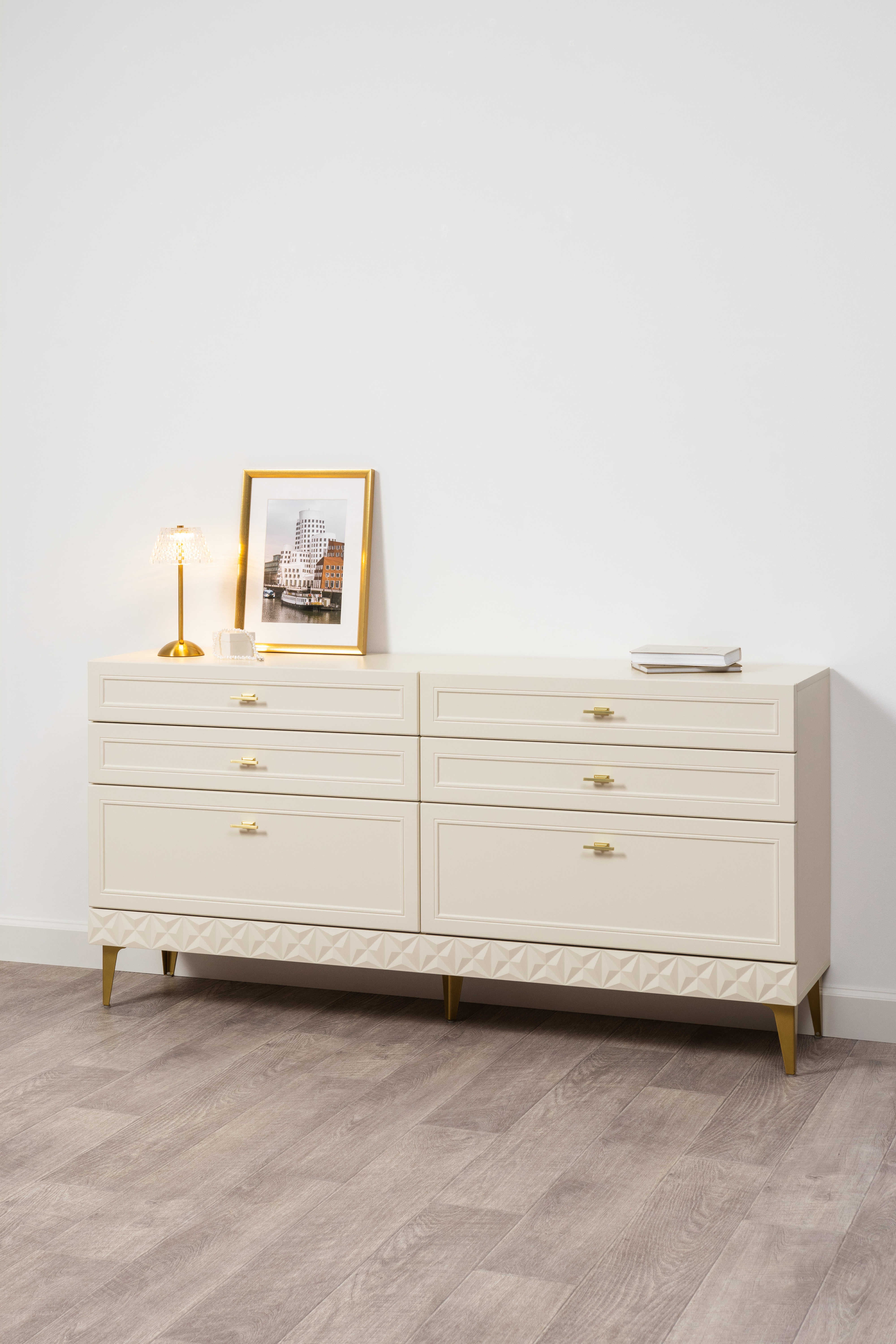 Комод Лакки бук песочный, дуб тортуга ПВХ, белый глянец ПВХ