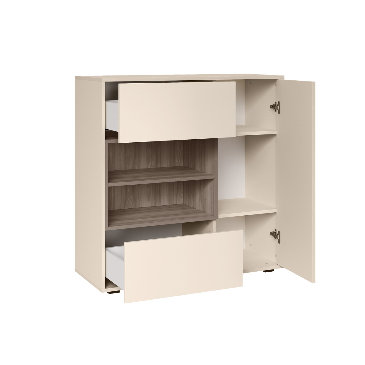 Комод Тайл 16.236 сатин 7045 SU, эмили блаш U9135, белый PE шагрень, собирается на любую сторону