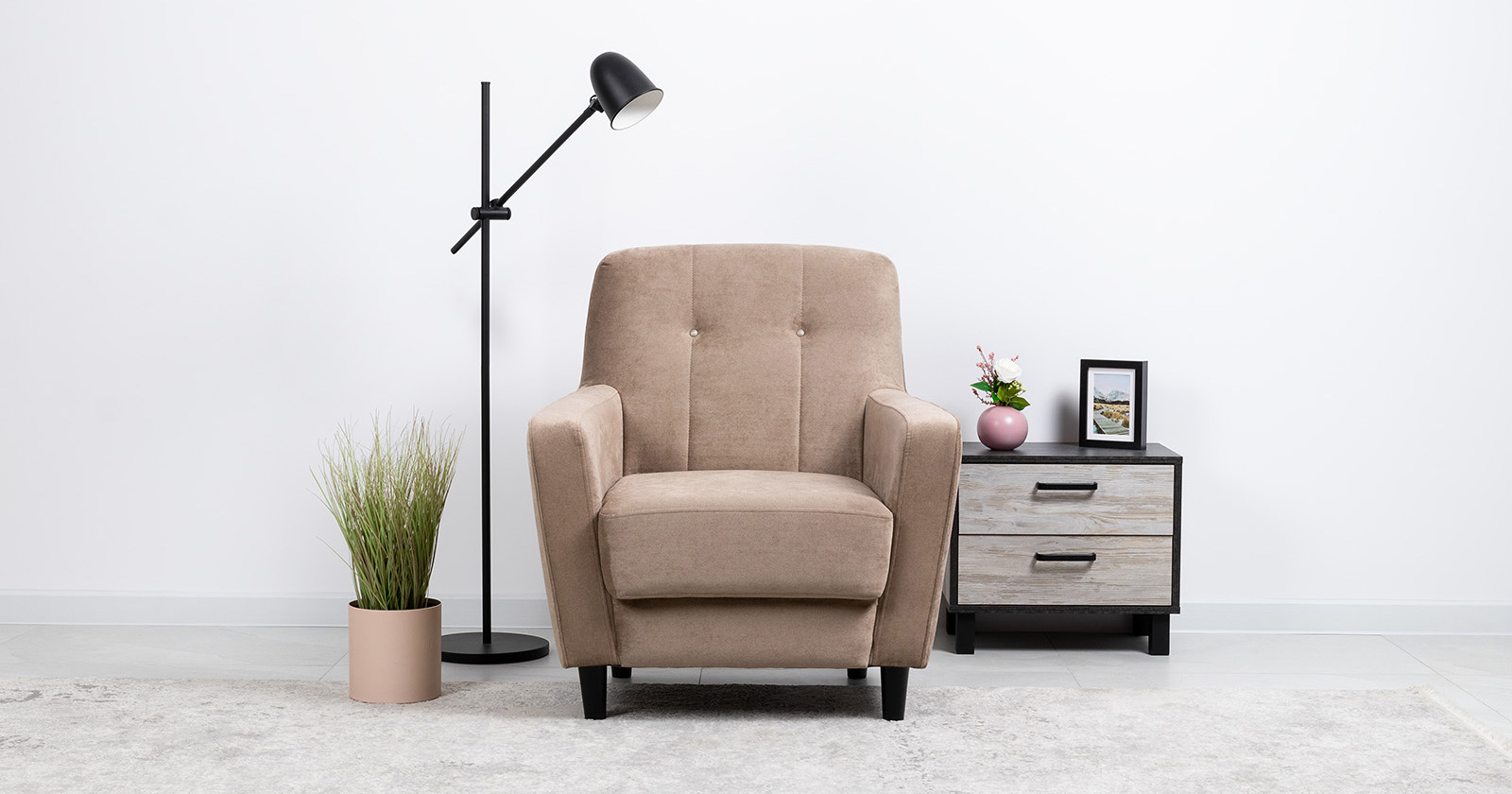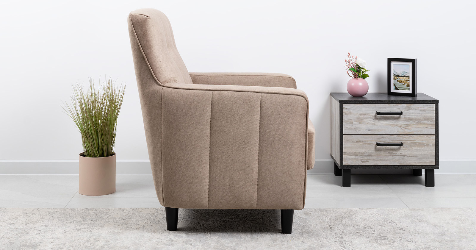 Лаконичное кресло Арно с комфортной посадкой дополнит современный интерьер. Высокие ножки из массива делают кресло визуально лёгким и уместным в комнате любой площади, а задняя спинка в ткани основы позволит использовать его для зонирования пространства. Модель выполнена в тактильно приятном микровелюре в трендовых цветах.
