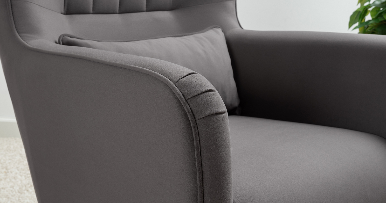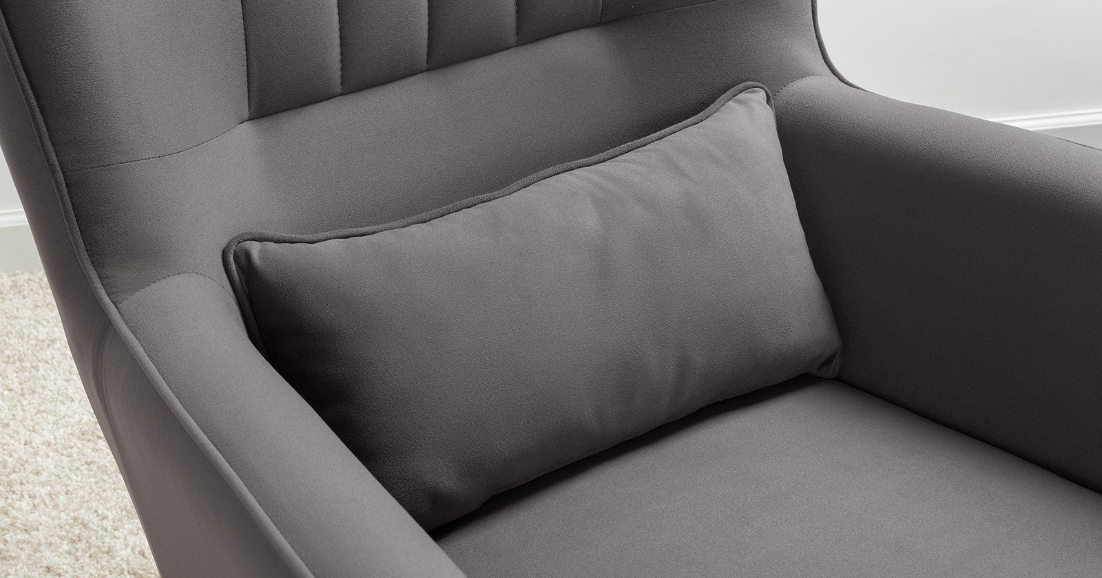 Вертикальная объемная стежка в средней части спинки; кант на спинке, подлокотниках и декоративной подушке