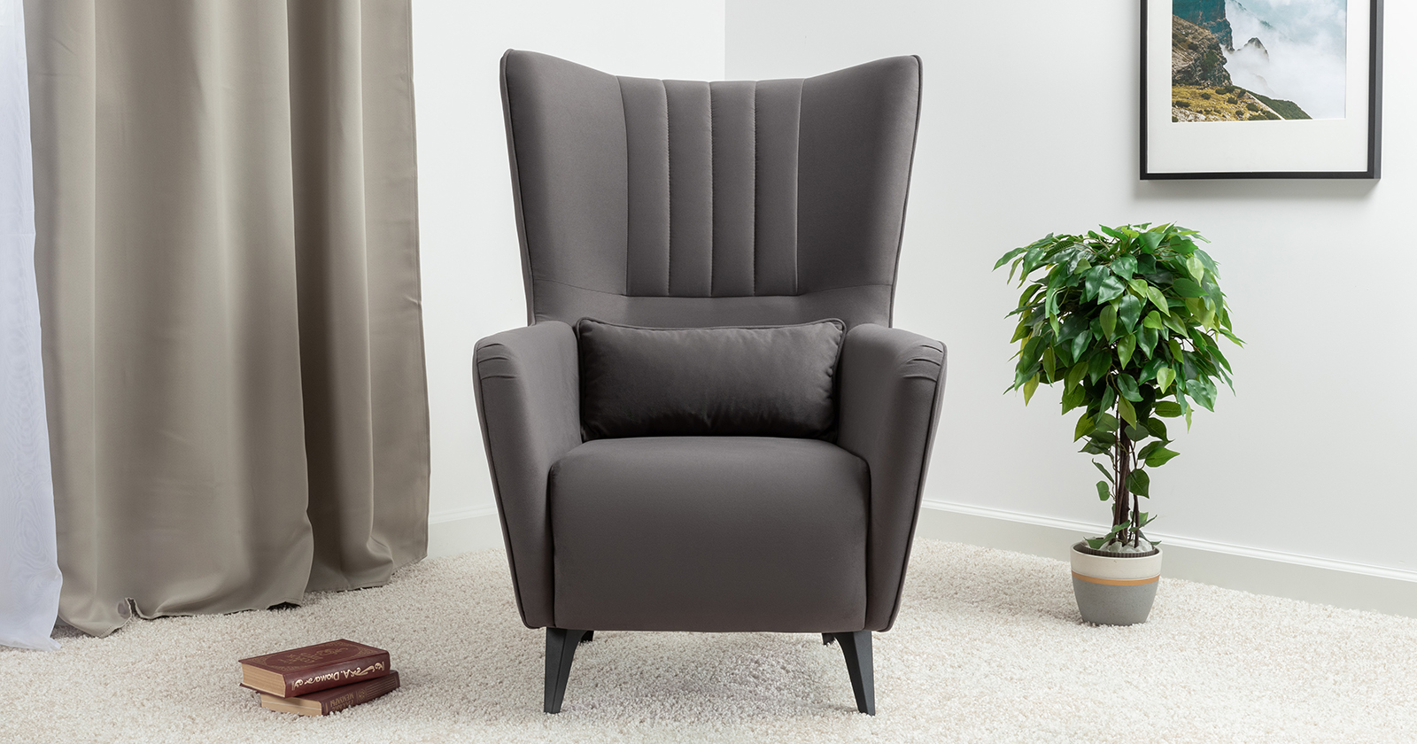 Классическое каминное кресло в современном прочтении. Элегантное кресло дополнит диван Ноэль или поможет организовать уголок для отдыха в гостиной, спальне или на лоджии. Высокая спинка с поясничной подушкой равномерно распределяет нагрузку на позвоночник, что позволяет качественно отдохнуть и расслабиться.