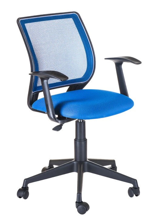 Кресло на колесах Флеш Рондо обивка ткань-сетка синее, подлокотники пластик, крестовина пластик, механизм профи
