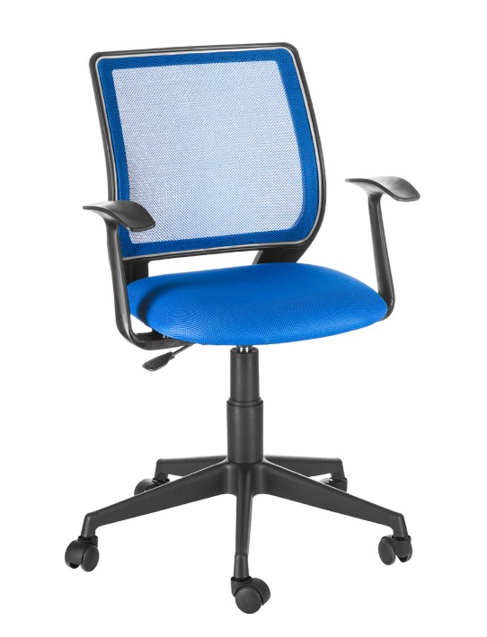 Кресло на колесах Флеш Рондо обивка ткань-сетка синее, подлокотники пластик, крестовина пластик, механизм профи