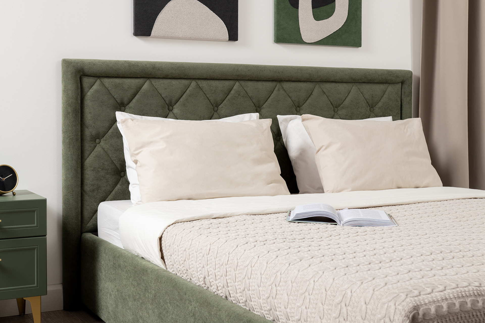 Кровать Марион 160 велюр OCEAN 012 темно-зеленый с ортопедическим основанием и подъемным механизмом (спальное место 160 х 200)