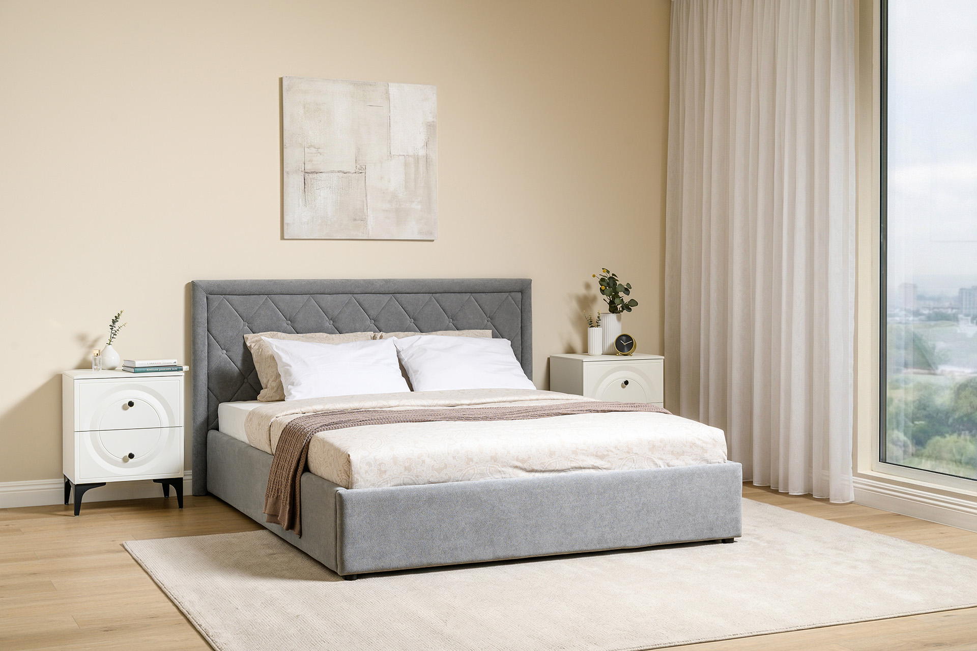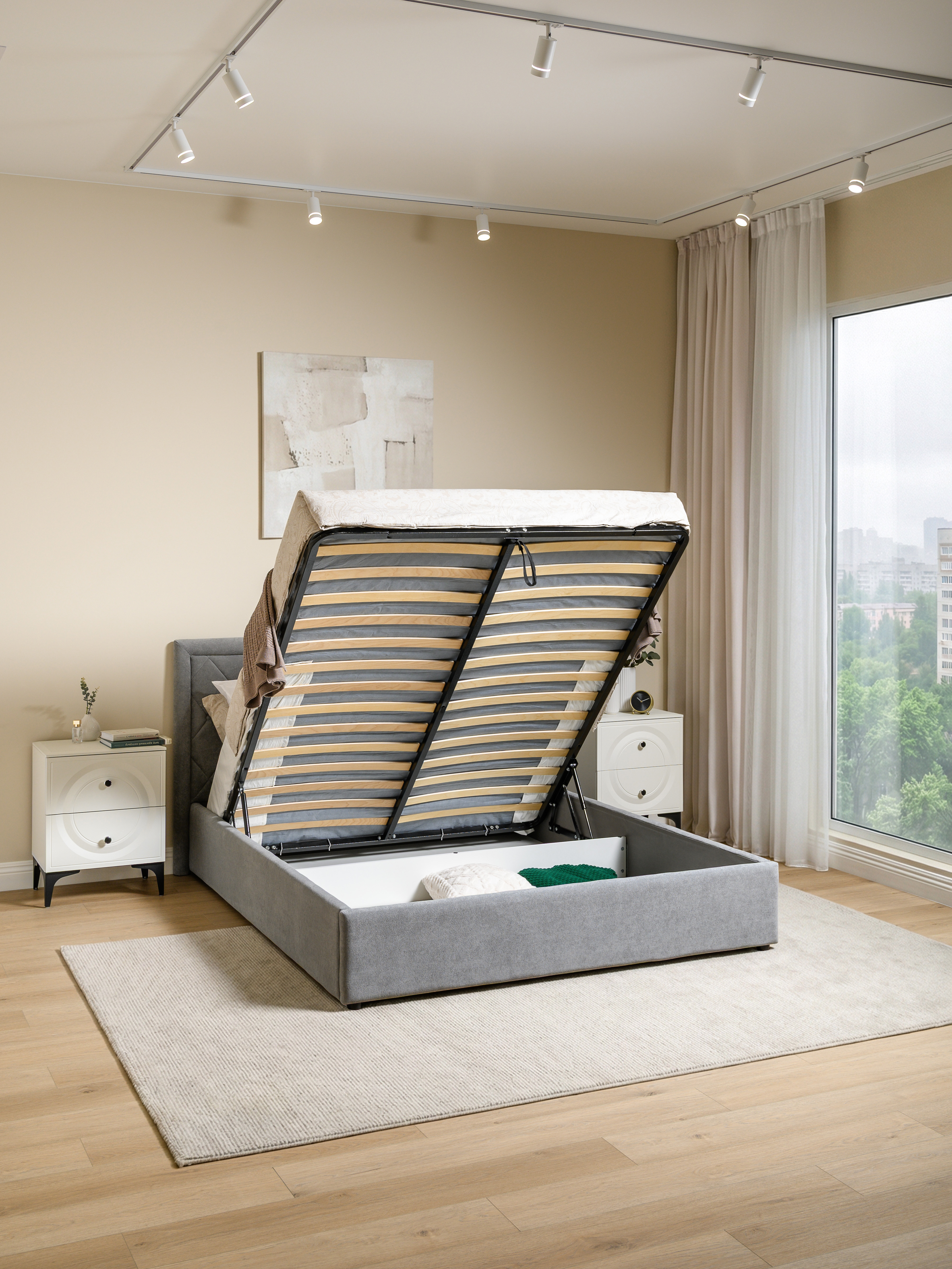 Кровать Марион 160 велюр OCEAN 023 серый с ортопедическим основанием и подъемным механизмом (спальное место 160 х 200)