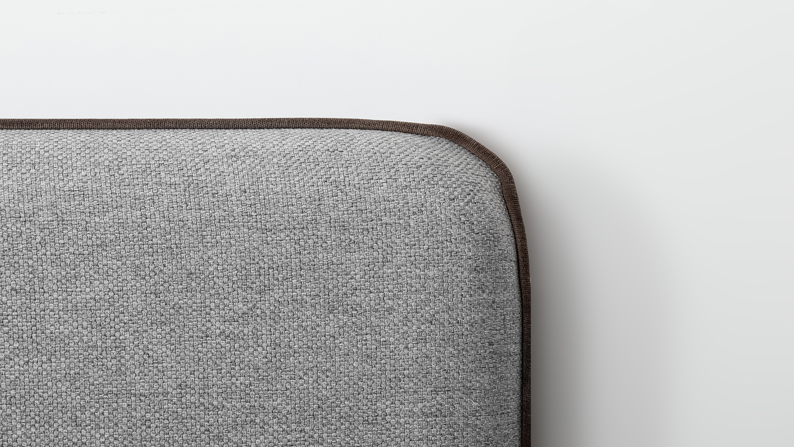 Cкругленный торец изголовья оформлен контрастным кантом.