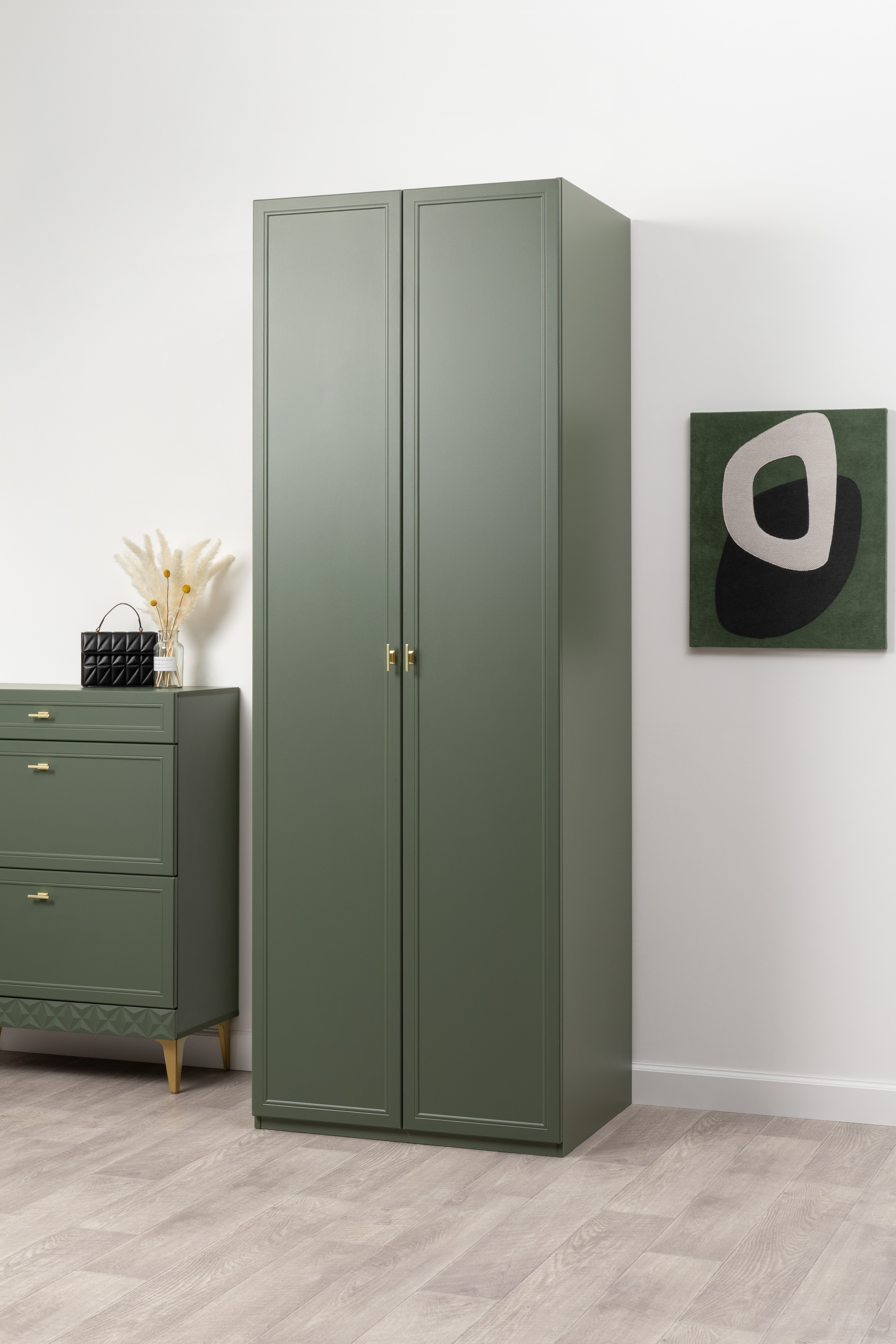 Шкаф двустворчатый Марион 16.340.02 дымчатый зеленый K521, олива шагрень AG 1050 ПВХ