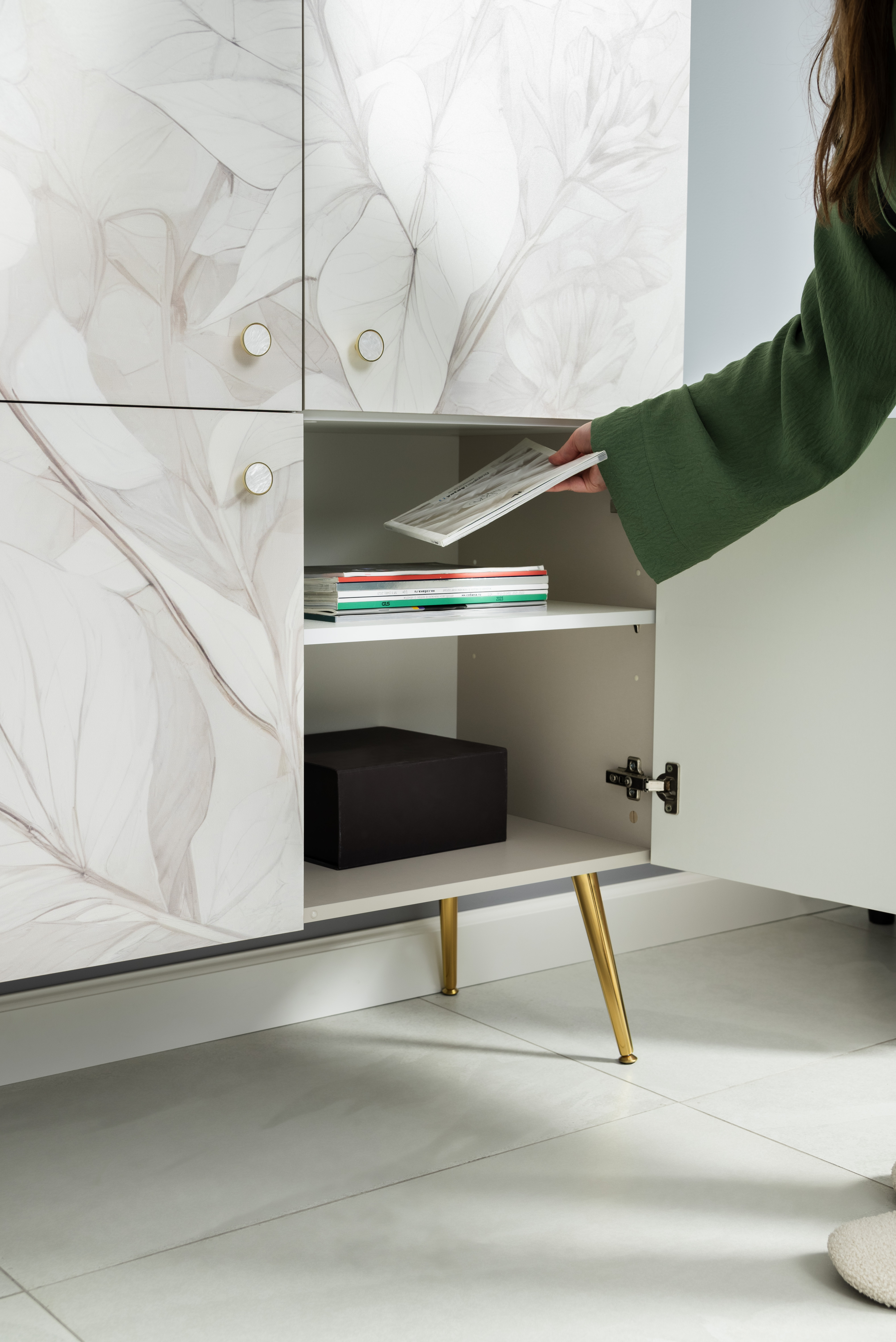 Комод Маттиас 16.245 дымчатый зеленый K521, гикори рокфорд натуральный KO86 PW, белый PE шагрень, фотопечать