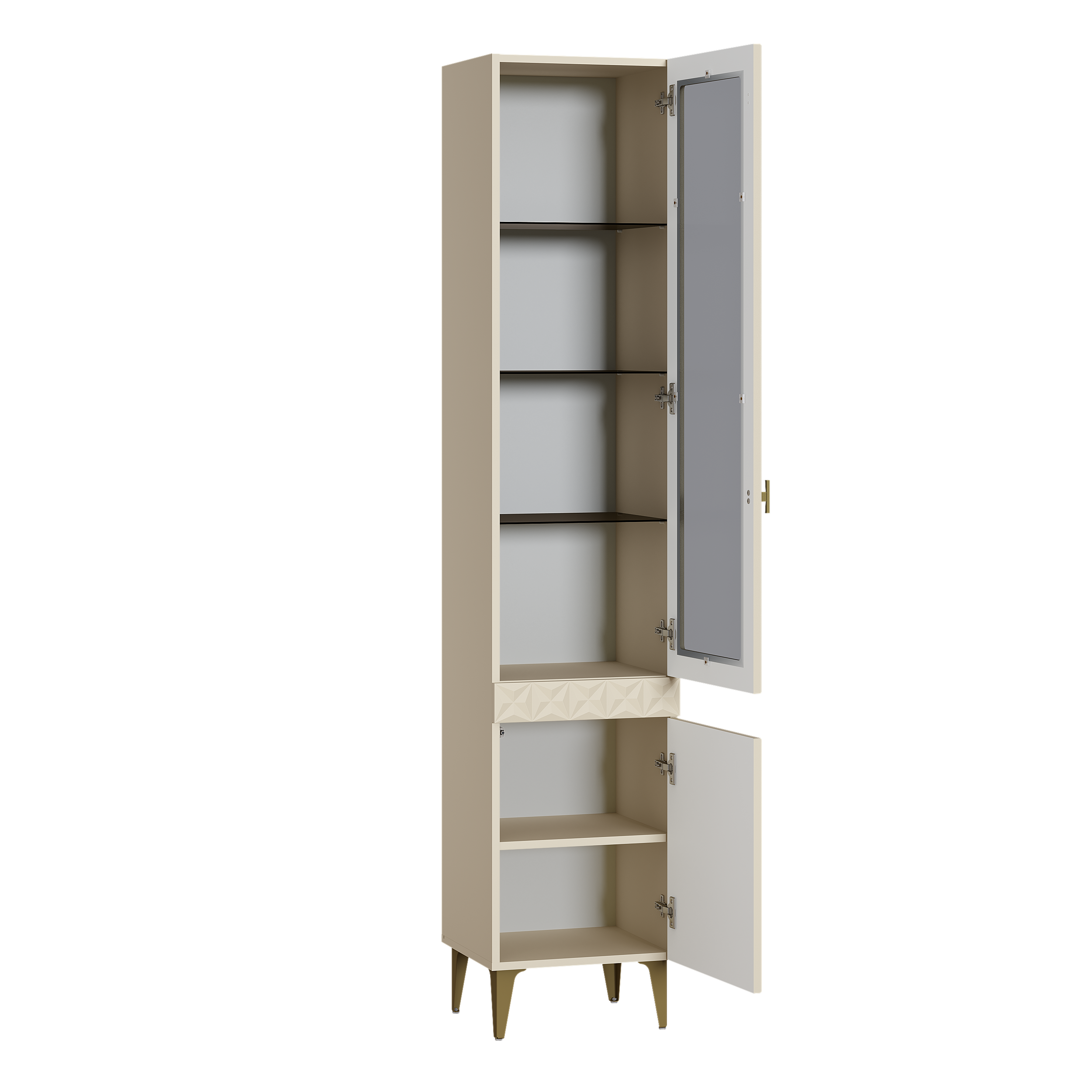 Шкаф-витрина Марион 16.397.01 слоновая кость С341 PE, слоновая кость 6898 ПВХ (собирается на любую сторону)