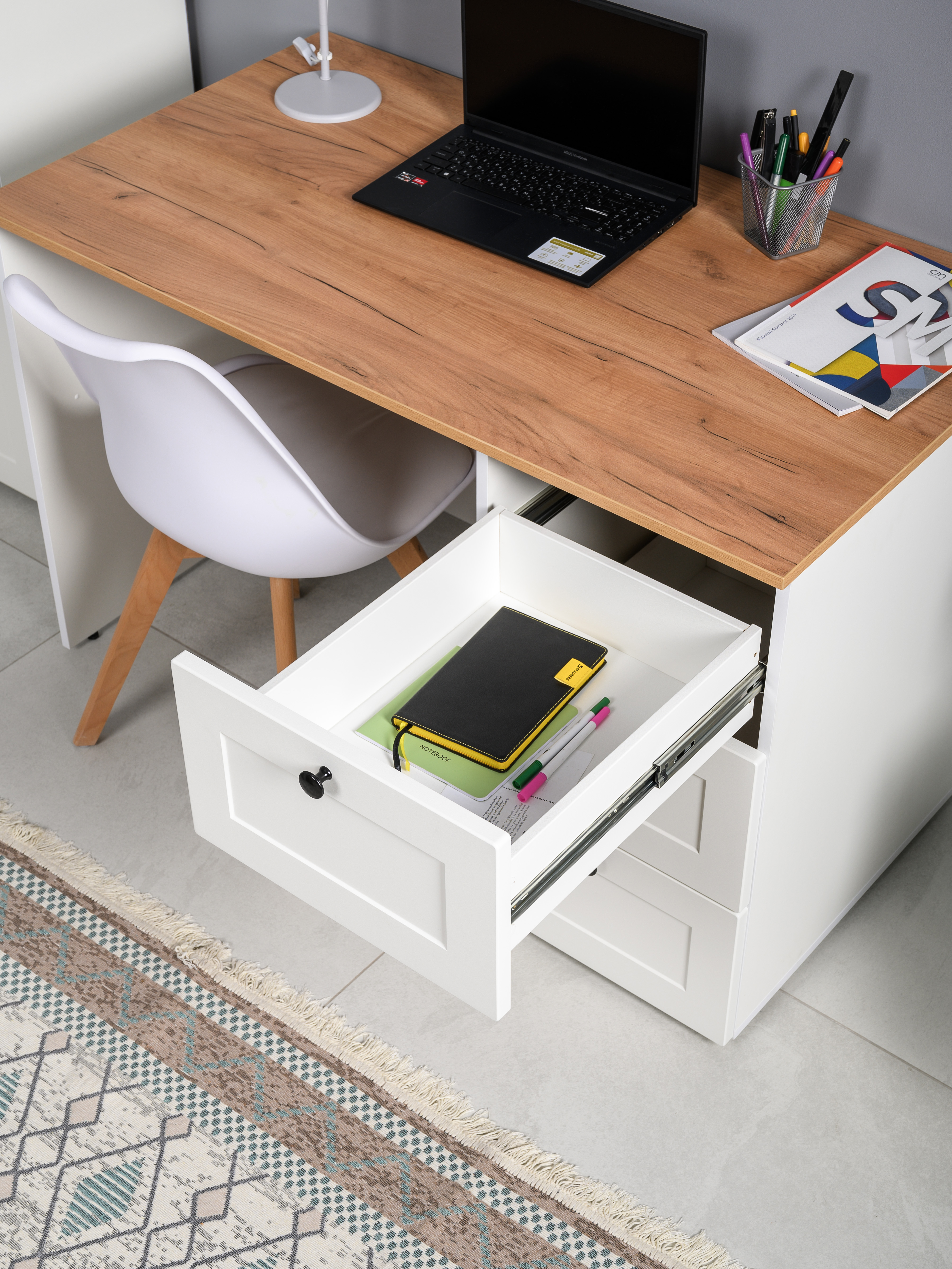 Стол письменный Лайт 03.243 Н дуб золотой CRAFT, белый премиум