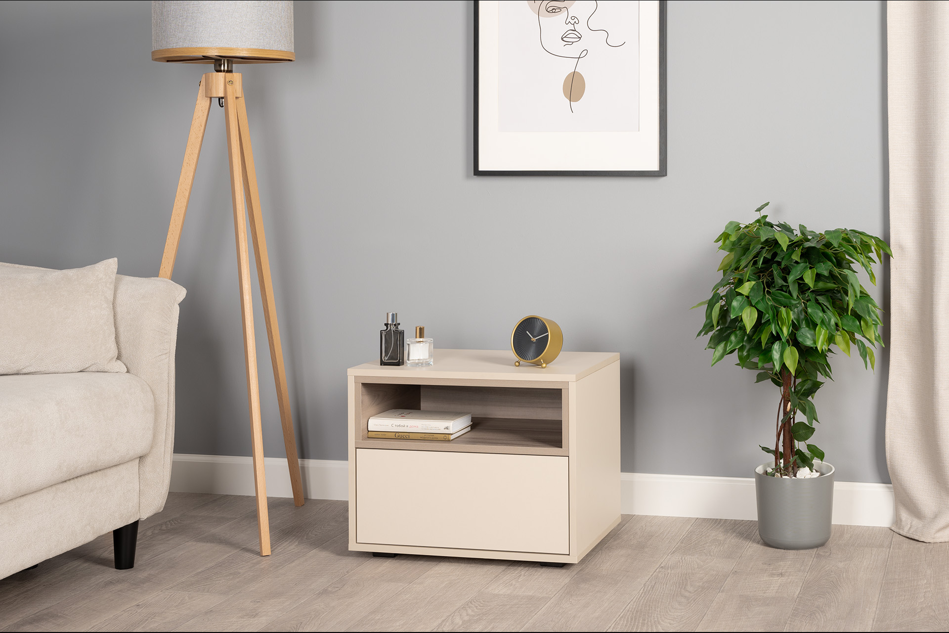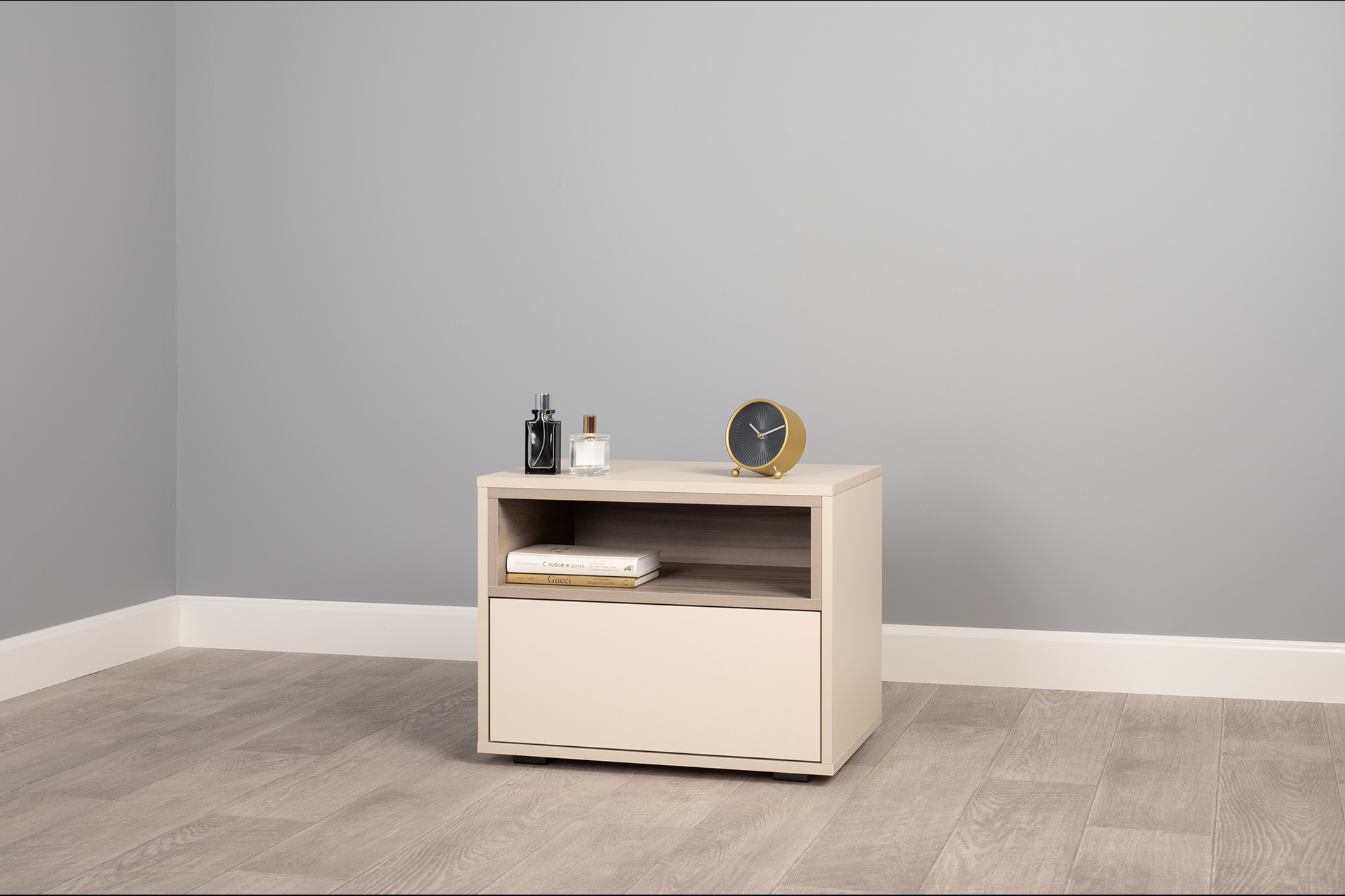 Тумба прикроватная Лакки бук песочный, дуб тортуга ПВХ, белый глянец ПВХ